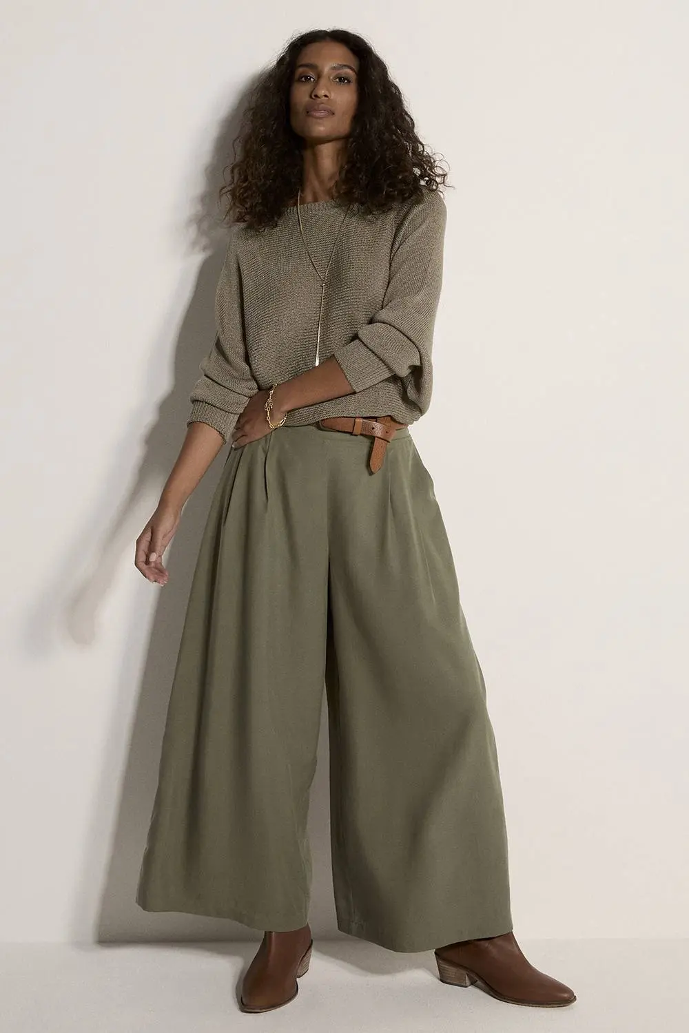Apricot Women's Slub Linen Wide-Leg Trousers in Khaki