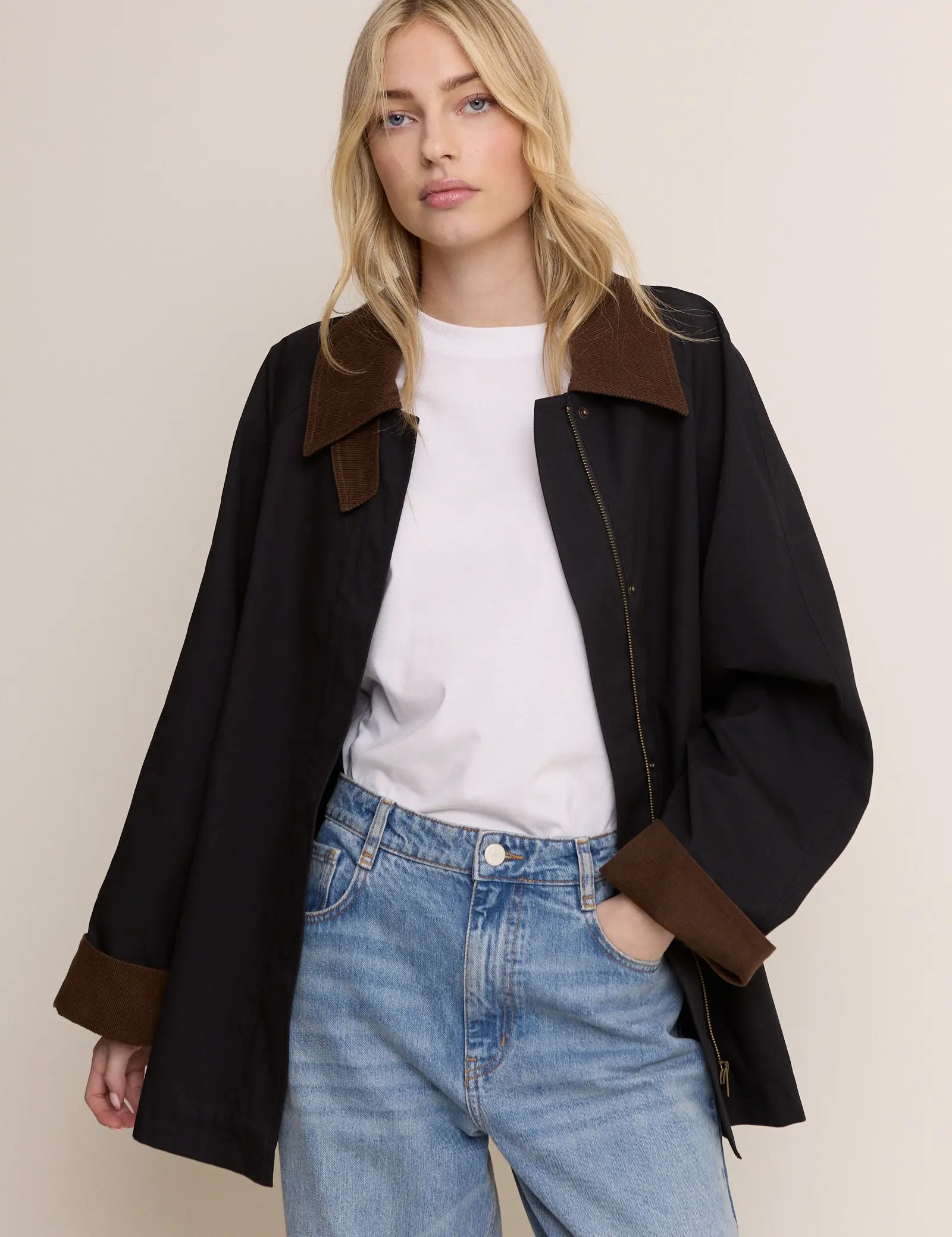 Dark Navy Cord Detail Barn Jacket