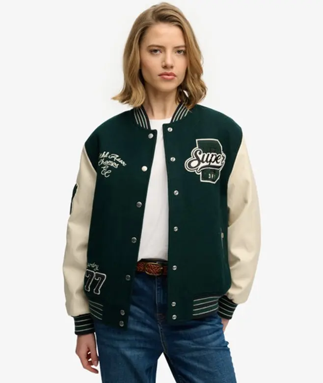 Superdry Women's Patched Varsity Bomber Jacket Green / Dark Pine Green -