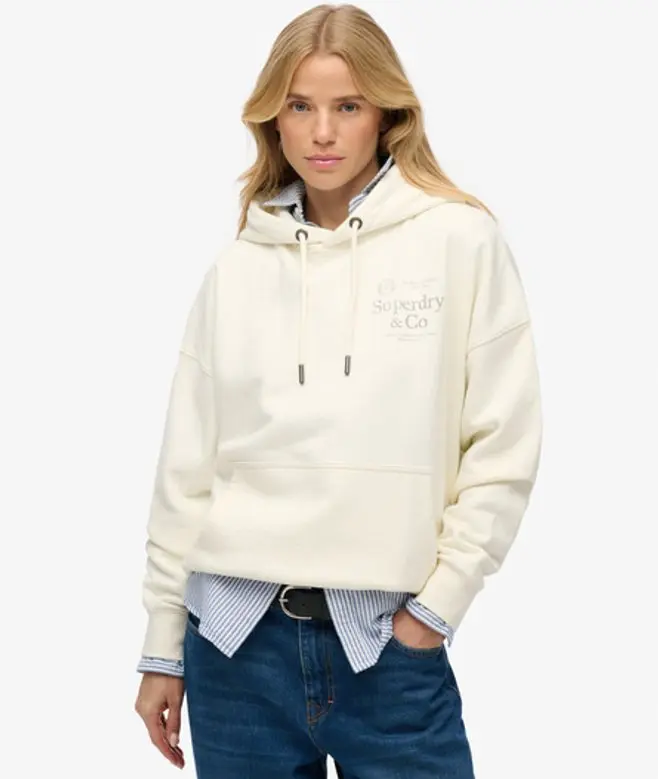 Superdry Women's Luxe Casual Relaxed Hoodie Cream -