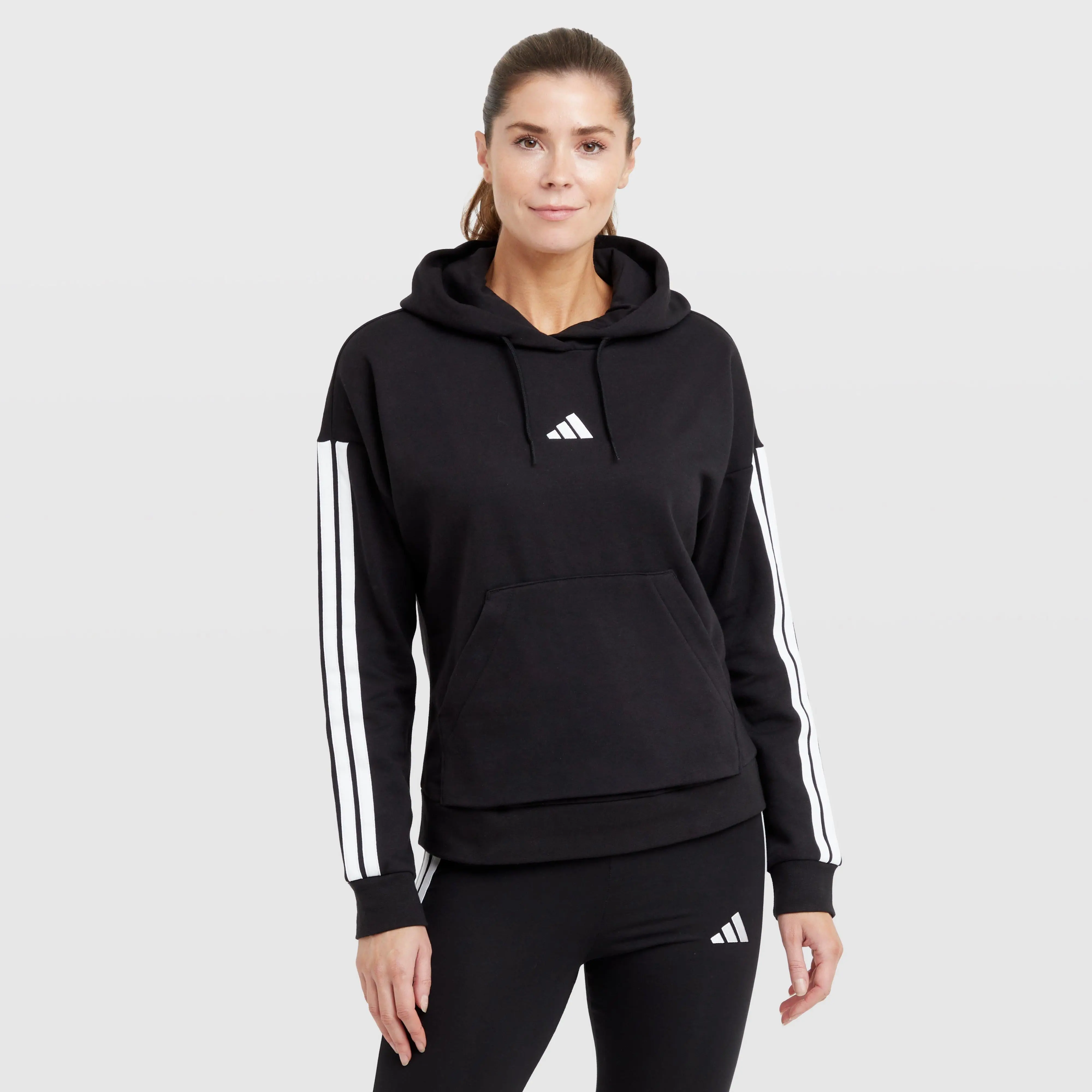 Crafted from soft brushed-back fleece that feels cosy and warm, along with the classic 3-Stripes down the sleeves that keep your athletic spirit on display. Boasting a 3 Bar Logo on the chest that adds a sporty touch. Finished with a front full-zip and drawcord-adjustable hood that lets you customise your coverage. Regular fit Full zip with drawcord-adjustable hood Fabric: 55% Cotton, 36% Polyester, 9% Viscose Kangaroo pockets Cuffed sleeves