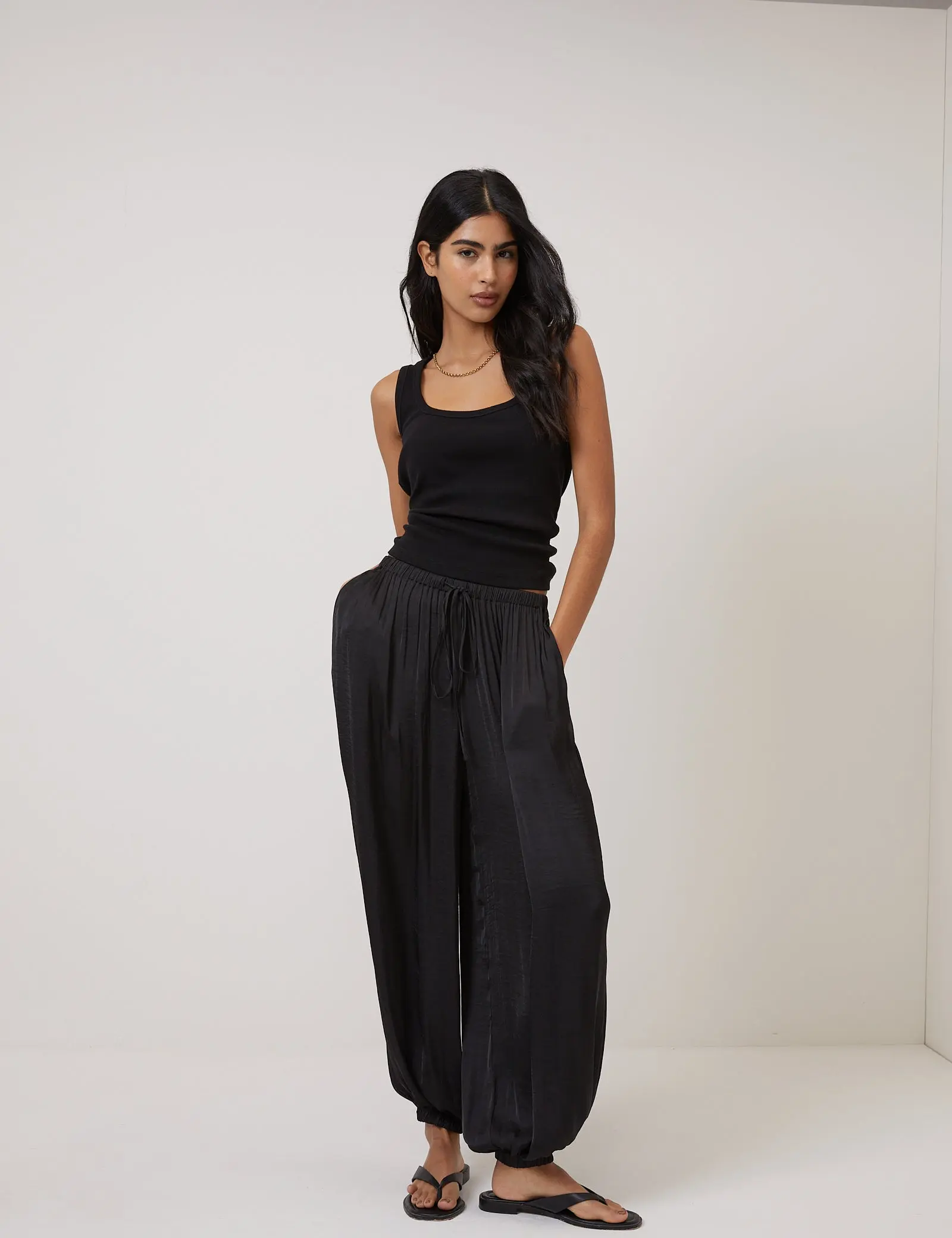 High waisted Tapered balloon leg Elasticated waist Drawstring detail Side pockets Elasticated cuffs Size tip: we recommend your usual size