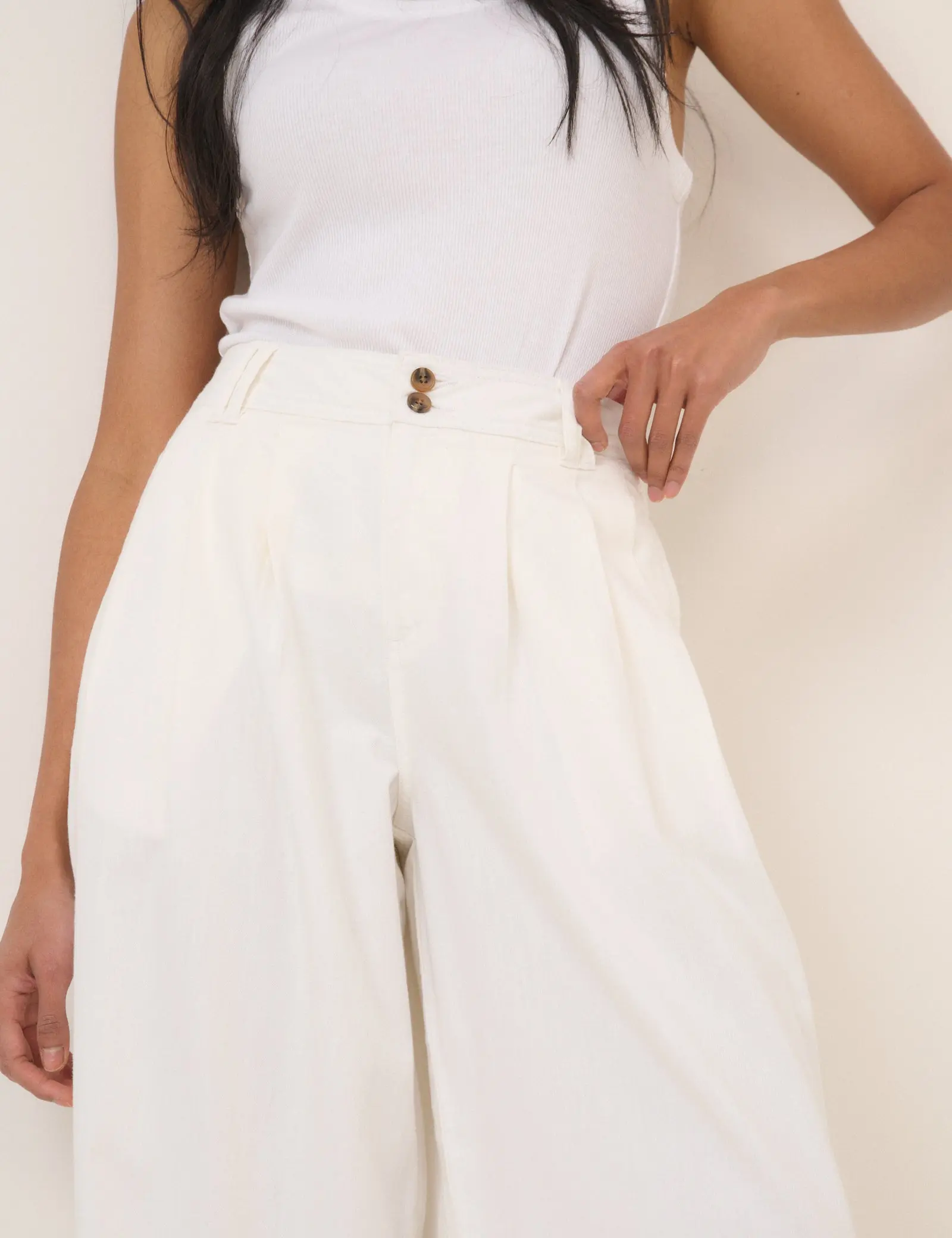 White Pleated Wide Leg Trousers