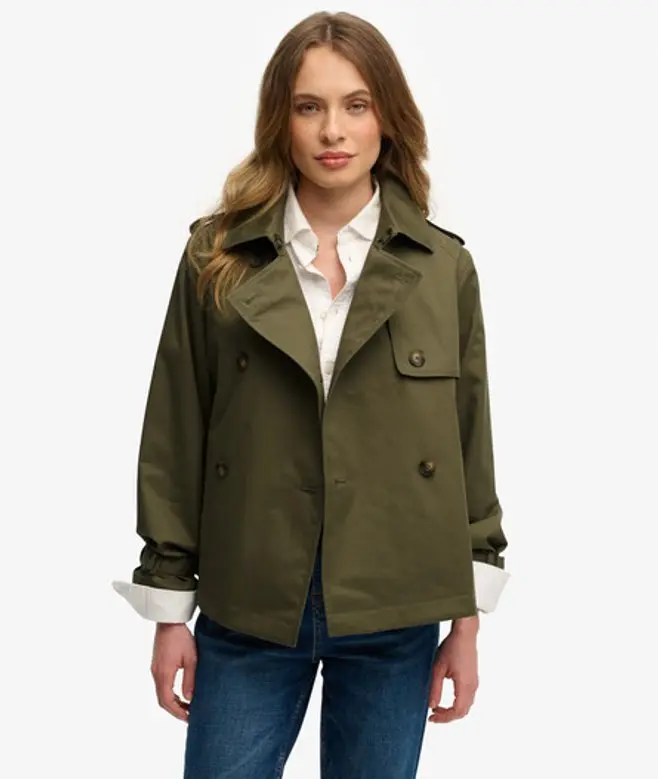 Superdry Women's Short Trench Coat Green / Dusty Olive Green -