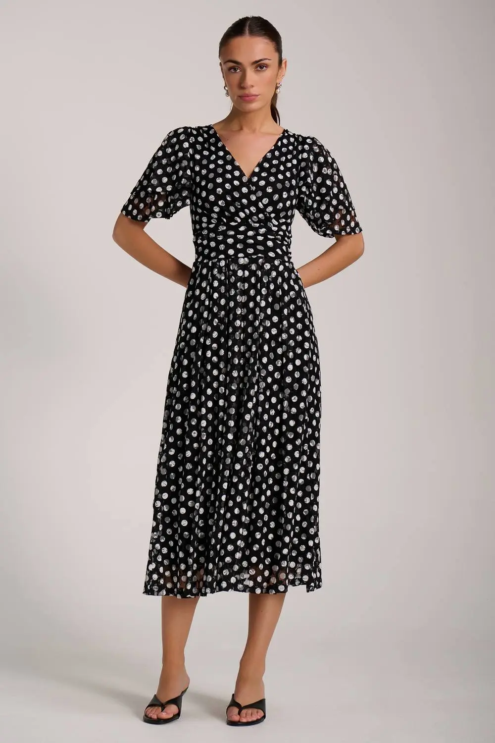 The Angel Lace Maxi Dress from Jolie Moi features a V neckline, short angel sleeves and a gathered skirt that combined with the maxi length creates a soft flowing silhouette. Made from lace, it is fully lined with a thick waistband, zip fastening and discreet pockets for added functionality. A graceful choice for any special occasion. | Jolie Moi Women's Angel Sleeve Print Lace Maxi Dress in Black | Size: 8