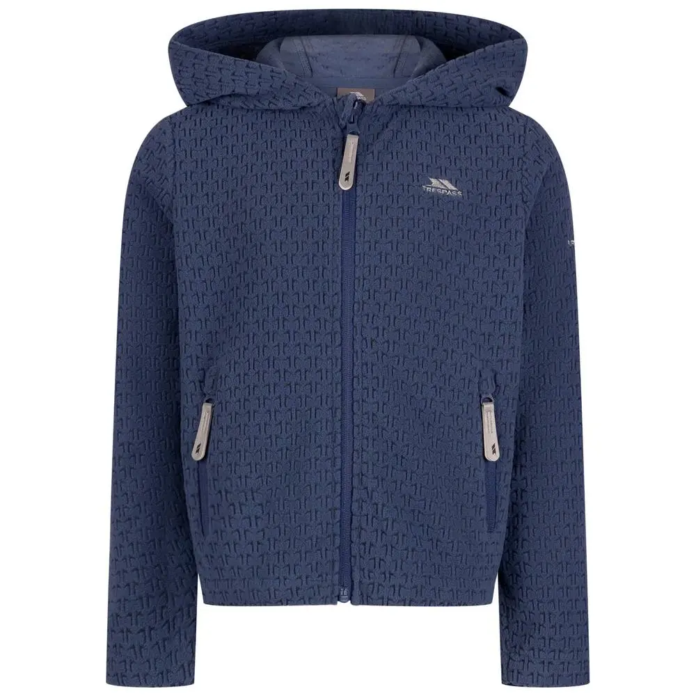 Design: Logo, Patterned. Neckline: Hooded. Sleeve-Type: Long-Sleeved. Hood Features: Sew-On. Pockets: 2 Front Pockets, Zip. Fastening: Full Zip. | Trespass Everild AT200 Fleece Jacket in Navy | Size: 5-6 Years