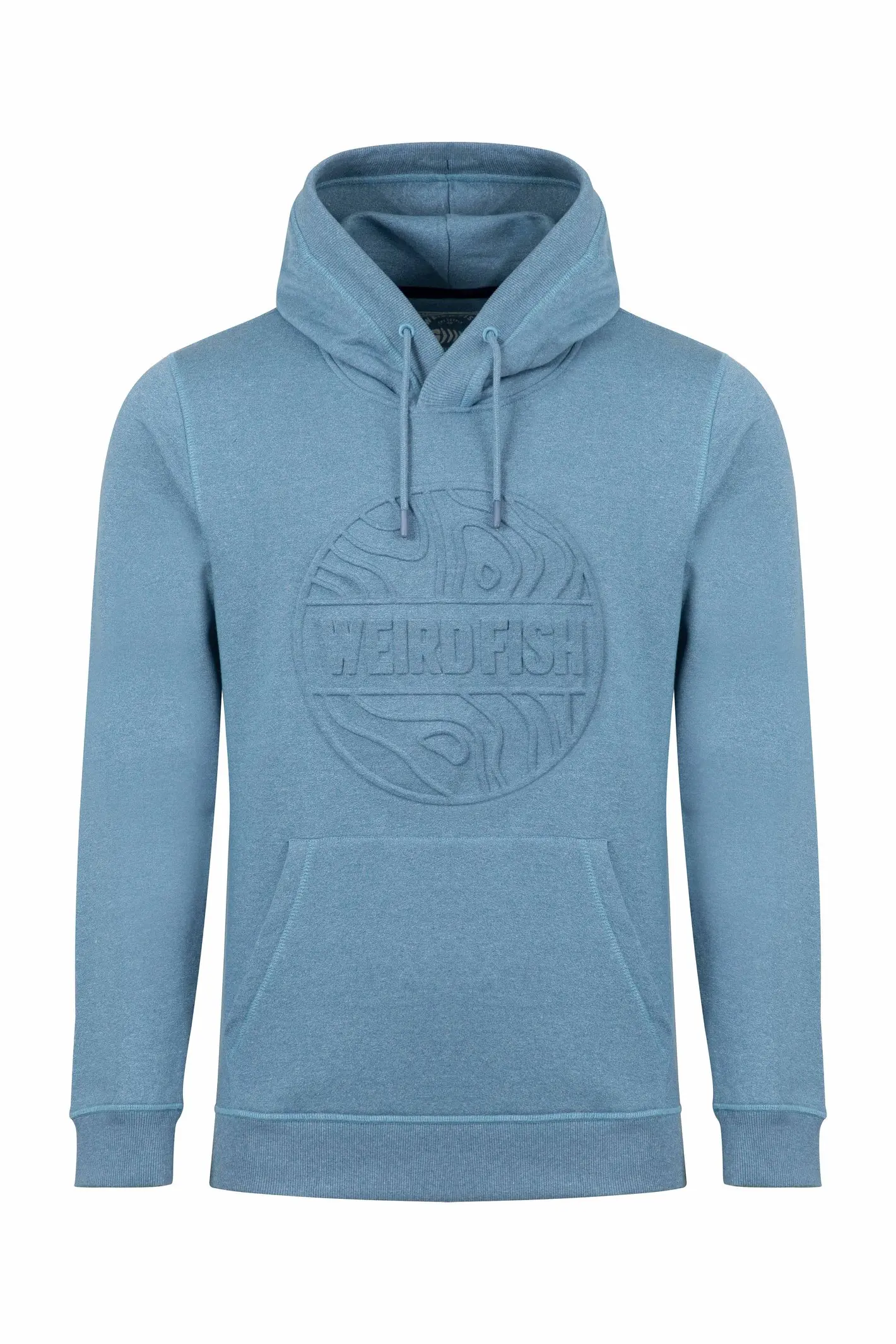 Weird Fish Perranporth Embossed Grindle Hoodie Washed Blue