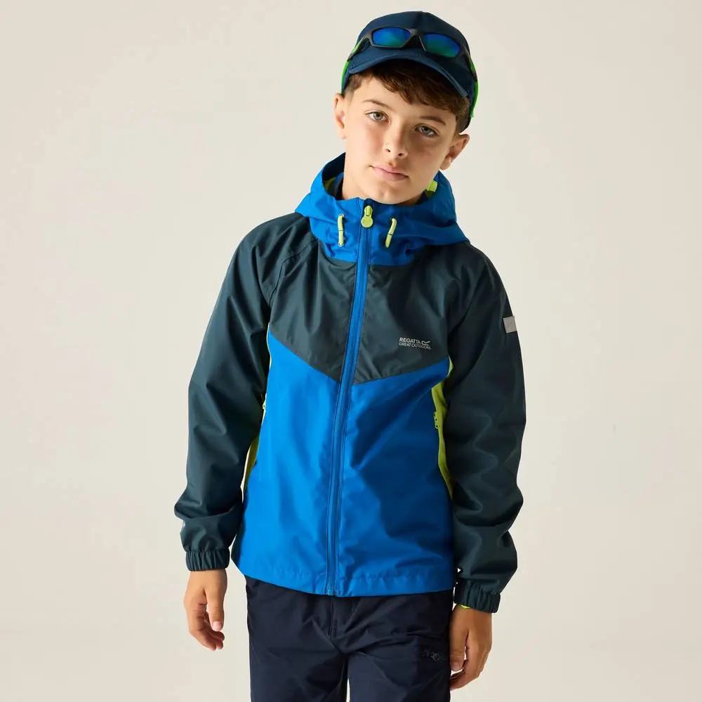 Keep little ones dry and comfortable with the Hanleigh kids jacket from Regatta. Made from Isotex 15000 stretch fabric with taped seams for reliable waterproof protection, its finished with a water-repellent coating and grown-on hood. Perfect for school days, outdoor play and family adventures. Waterproof breathable ISOTEX 15000 100% polyester stretch fabric - 165 gsm Breathability rating 15,000 g/m/24 hours 100% polyester mesh lining with 100% polyester taffeta lined sleeves Taped seams for complete waterproof protection Durable water repellent finish Grown on hood 2 lower zipped welt pockets Printed name label (up to age 8) 360 Reflective trims | Regatta Hanleigh Panelled Hooded Waterproof Jacket in Blue | Size: 7-8 Years