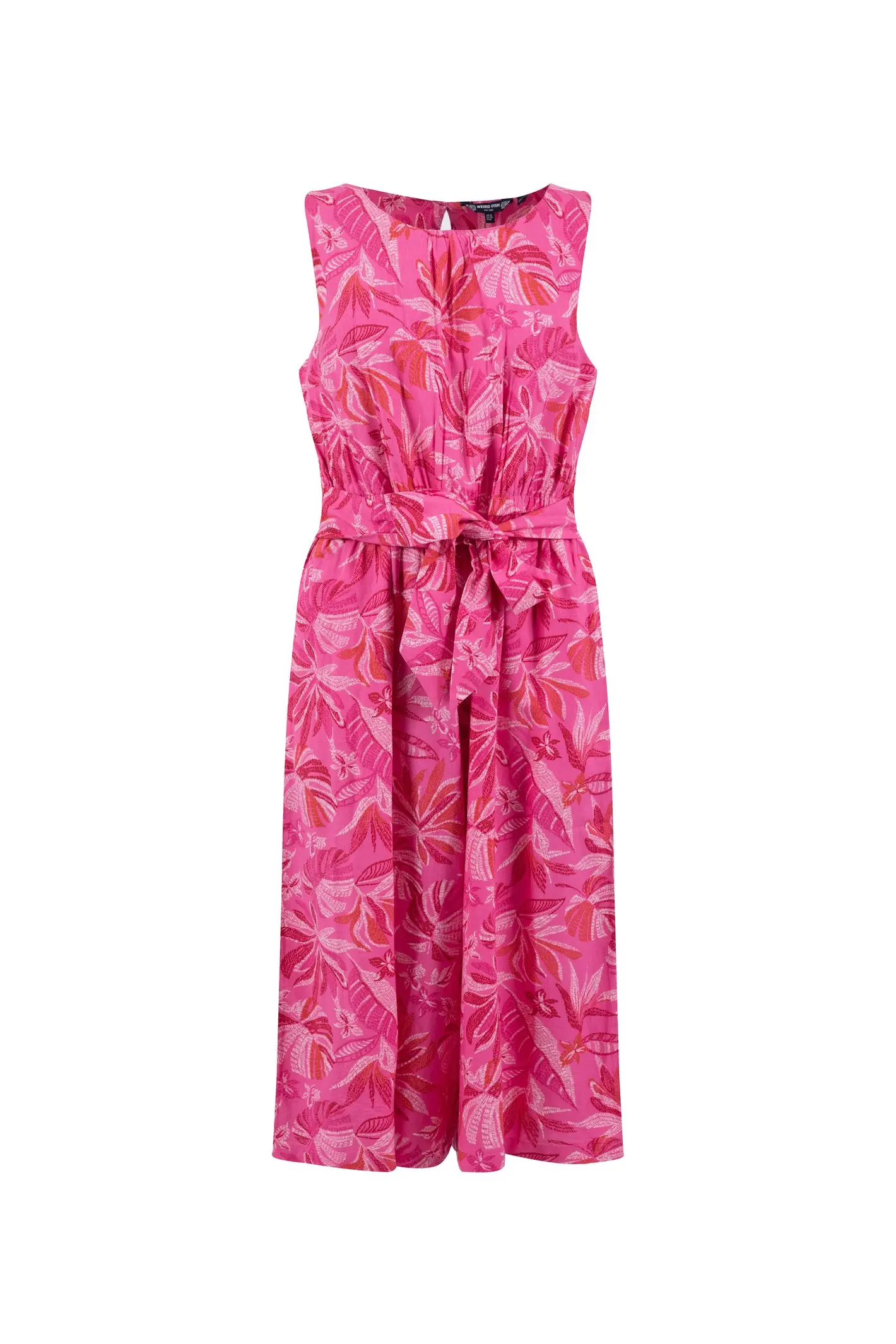 Our versatile Nalani Printed Viscose Jumpsuit is the perfect summer piece thanks to its cool and floaty fabric. Perfect for BBQs and drinks by the coast the Nalani provides effortless summer style and boasts an exclusive Weird Fish print. Go from day to night with just a shoe change. Pair with trainers or sandals for a more casual look or dress up for an evening out with heels.Hand slip pocketsConcealed zipAll over printMatching waist tie100% Viscose30° Machine Wash