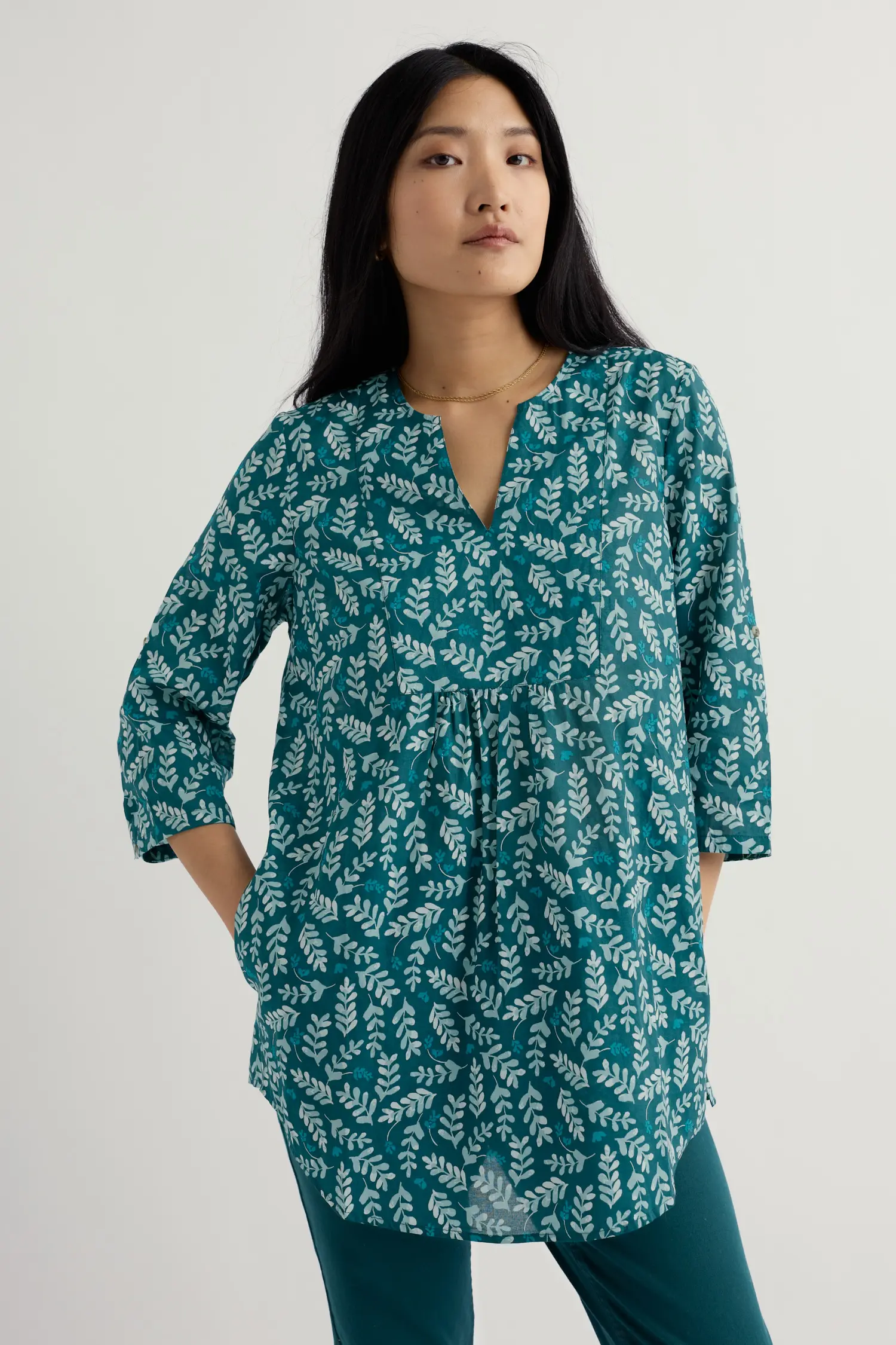 Summer tunic made from organic cotton, with pockets and roll up sleeves.