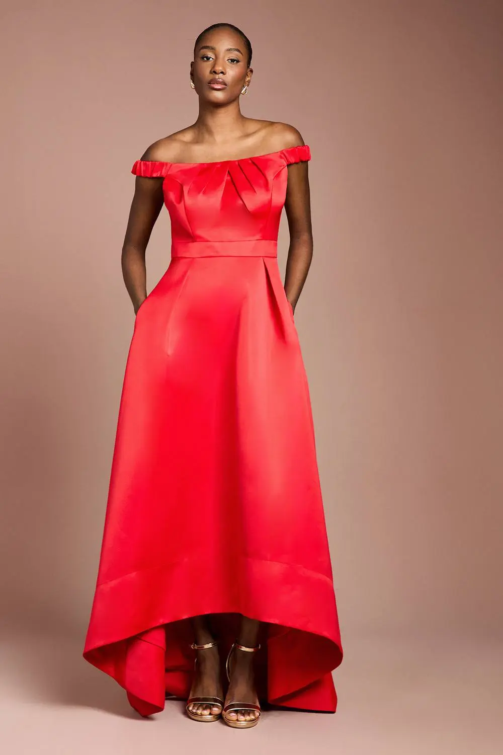 Coast Women's Bardot Fit & Flare Hi Low Hem Maxi Dress in Flame Red