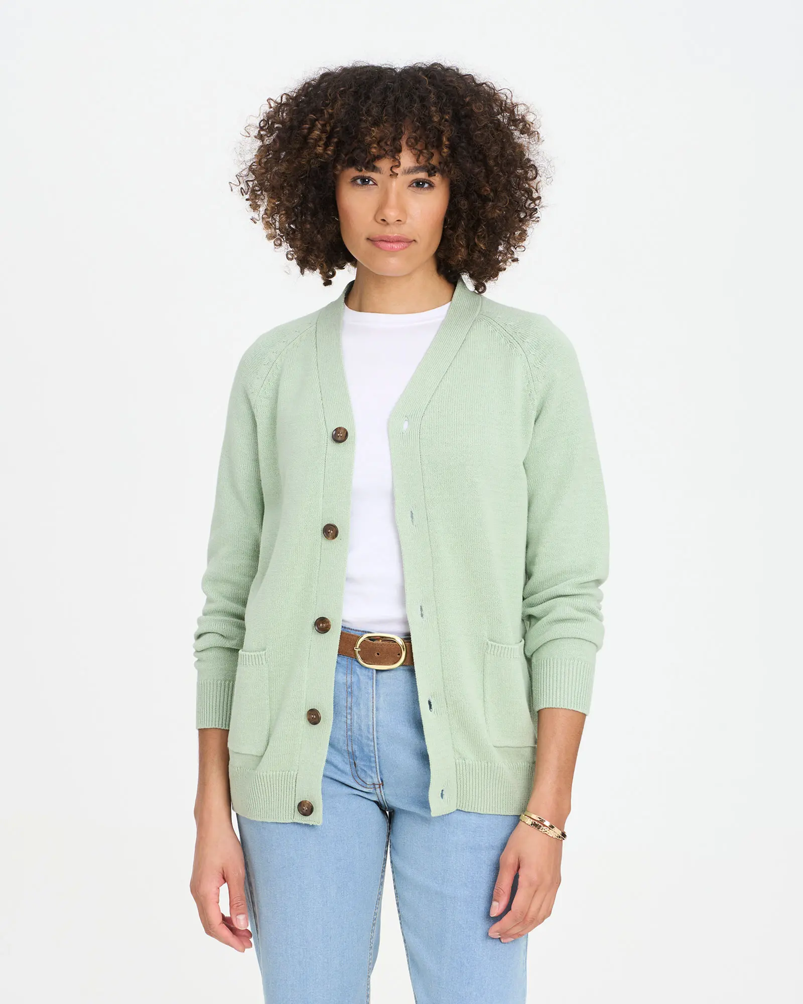 Cotton Traders Cotton Button Through Cardigan in Green, 100% Cotton