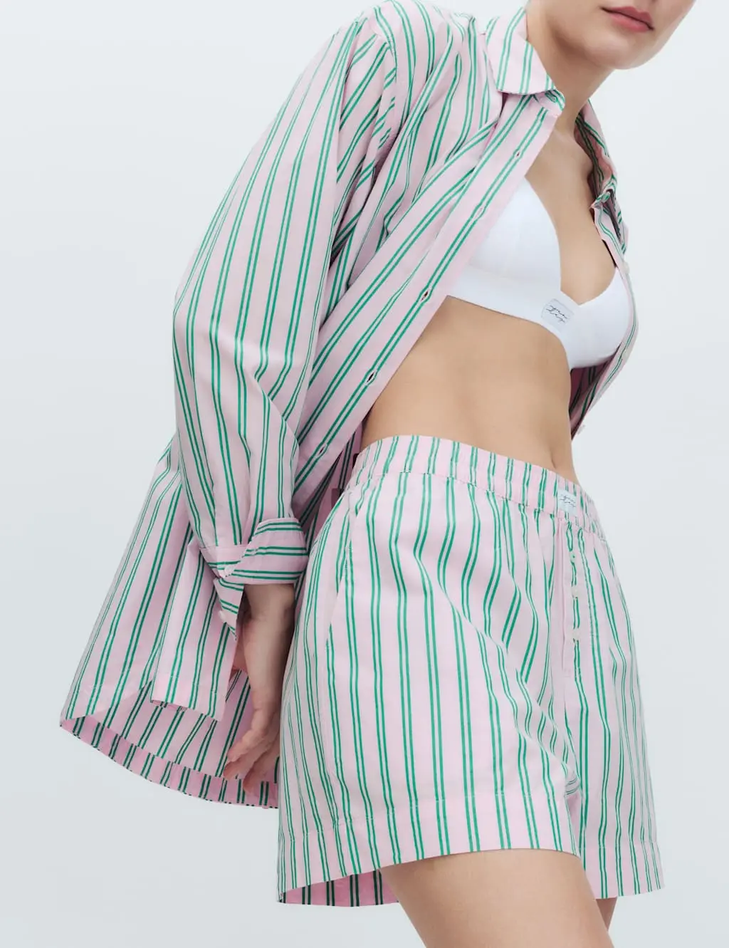 M&S Pure Cotton Poplin Striped Pyjama Shorts Blossom