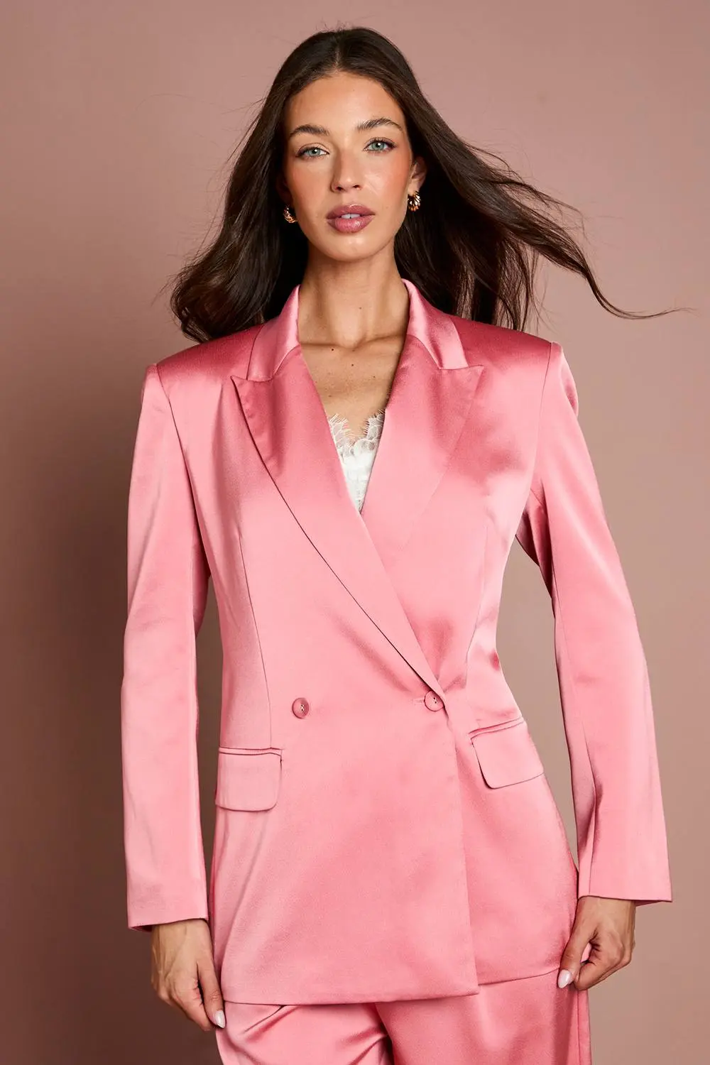 Tailored double-breasted silhouette with elegant notch lapel detailing Lustrous satin finish that catches the light beautifully Structured shoulders and long sleeves for a refined profile Functional front pockets add practicality to sophisticated design Versatile statement piece perfect for special occasions and formal events This Coast satin blazer exemplifies contemporary elegance with its tailored fit and double-breasted design. The notch lapel adds a classic touch to this modern piece, whilst the sumptuous satin fabric creates a subtle sheen that enhances its sophisticated appeal. Style with the matching trousers for a coordinated ensemble, or pair with a delicate lace camisole as shown for a feminine contrast. This versatile blazer transitions effortlessly from daytime events to evening soires-wear to weddings with tailored trousers and pointed court shoes, or style with a sleek midi skirt for race day elegance. The structured silhouette flatters the figure whilst maintaining a refined aesthetic, making it an essential investment piece for your occasion wardrobe that will serve you through numerous celebratory events. | Coast Women's Satin Double Breasted Blazer in Rose | Size: 8