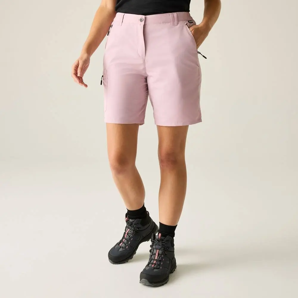 The Chaska Shorts III from Regatta are perfect for your outdoor adventures. The lightweight woven fabric provides exceptional comfort and durability. The women's shorts are great for changeable weather thanks to the water-repellent finish and UV protection fabric rated at UPF 50+. They're quick-drying too, keeping you feeling fresh and comfy on the go. The ladies hiking shorts are made with crease-resistant fabric, so they're great for packing. The part-elasticated waist provides a comfortable and secure fit, while the multiple pockets keep your essentials close by. | Regatta Women's Chaska III' Walking Shorts in Light Pink | Size: 10