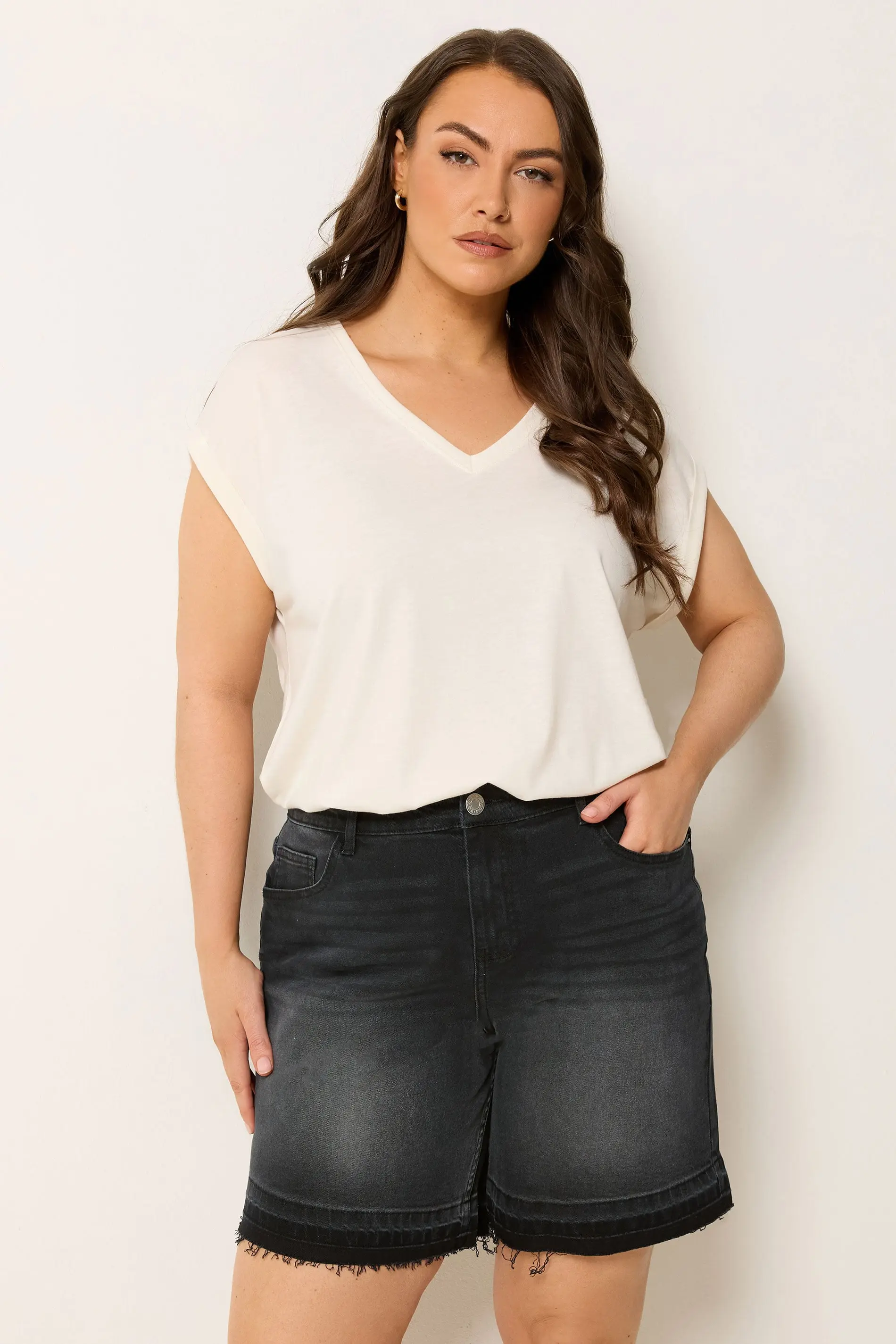 Yours Plus Size Black Hem Detail Denim Shorts Size 34-36