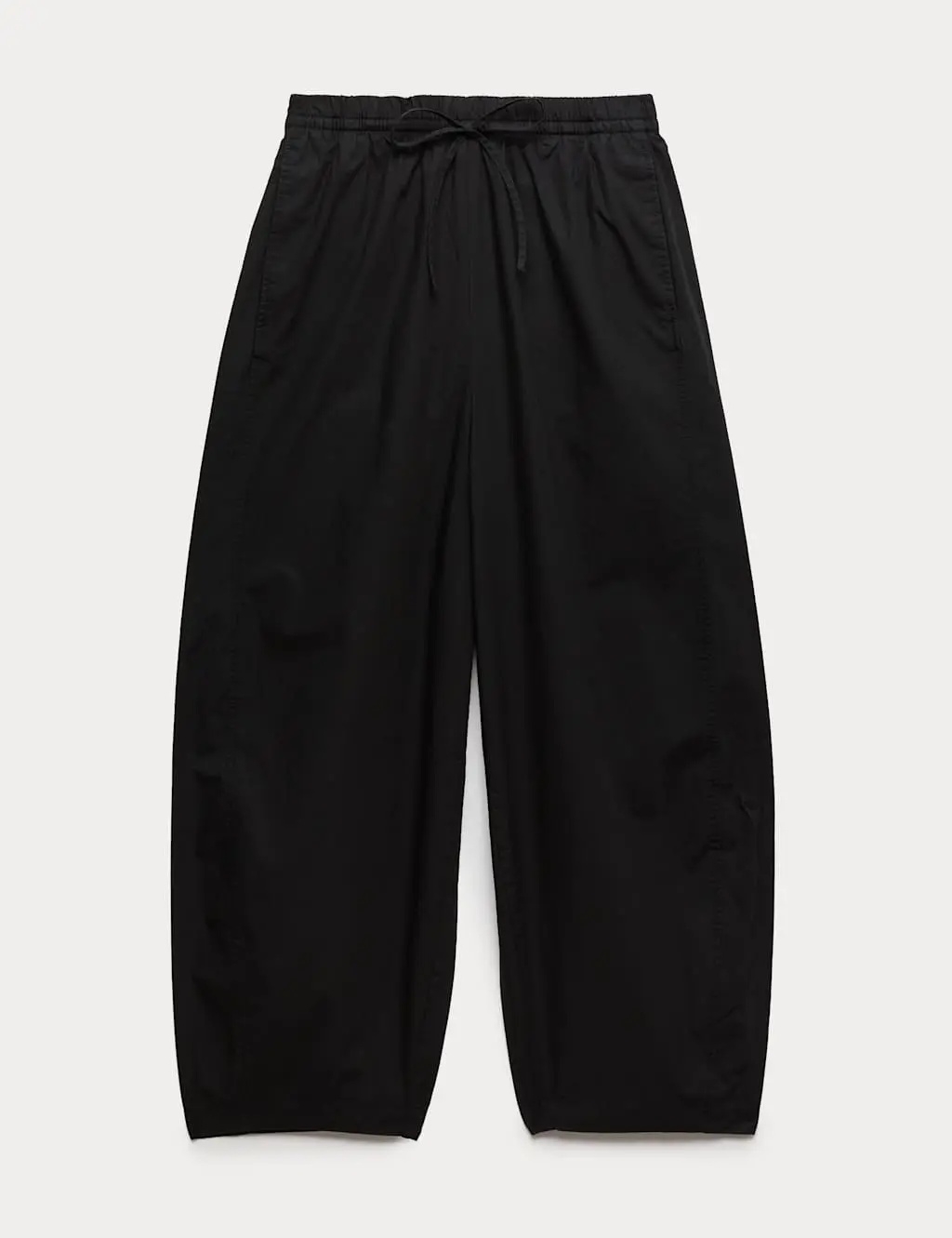 These pure cotton poplin trousers are a comfy and versatile warm weather staple. Designed to sit high on the waist with a casual barrel leg shape that grazes the ankles. The elasticated waistband features adjustable drawstrings for the perfect fit. Complete with two handy pockets. M&S Collection: easy-to-wear wardrobe staples that combine classic and contemporary styles.