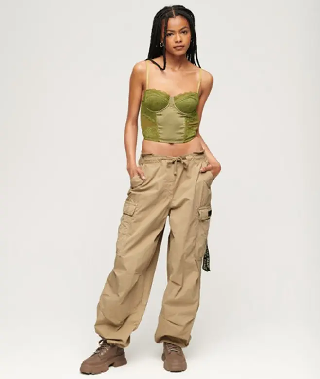 Superdry Women's Baggy Parachute Pants Beige / Stone Wash Taupe Brown -