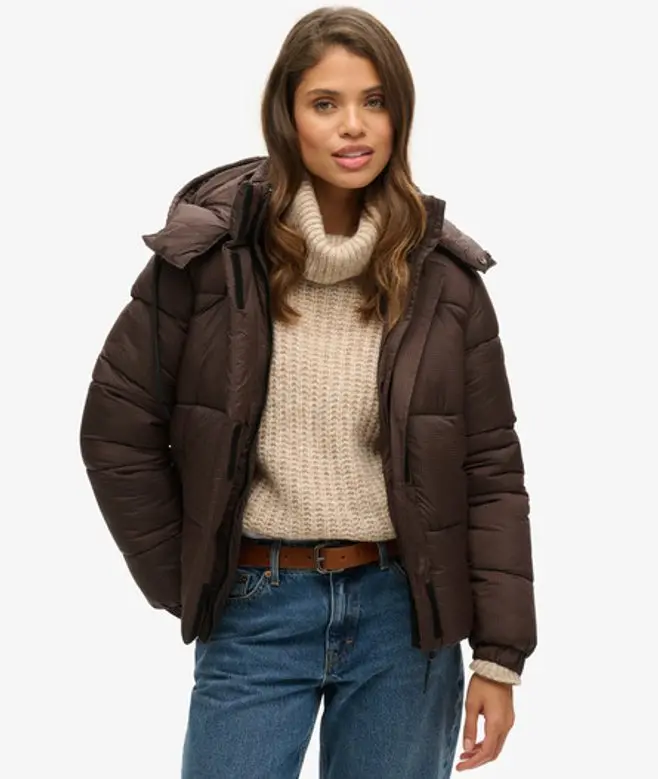 Superdry Women's Hooded Ripstop Puffer Jacket Brown / Dark Oak Grid -