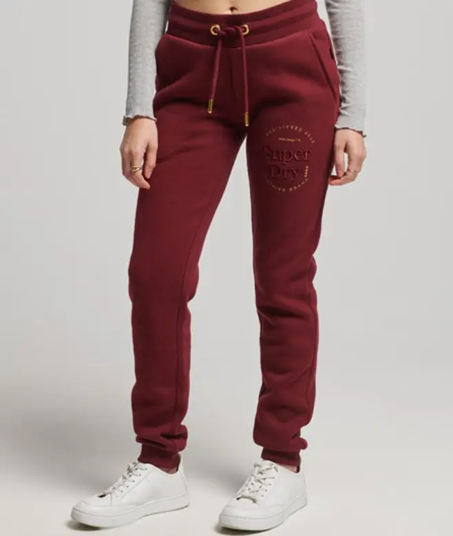 Superdry Women's Luxe Embroidered Logo Joggers Red / Deep Port -