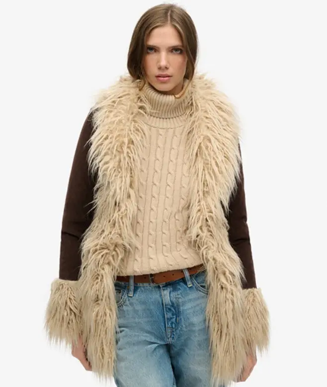 Superdry Women's Faux Fur Lined Afghan Coat Brown / Coffee Bean Brown -