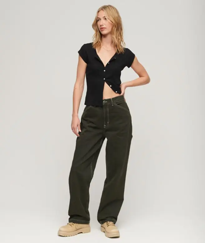 Superdry Women's Ladies Classic Contrast Carpenter Wide Leg Pants, Green, Organic -