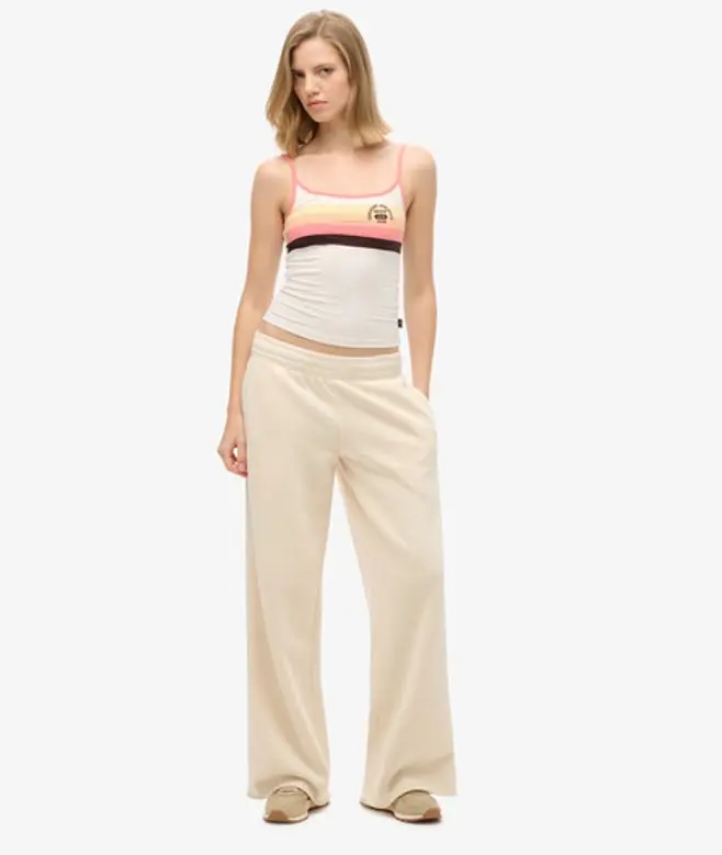 Superdry Women's Ladies Embroidered Wash Straight Joggers, Cream,