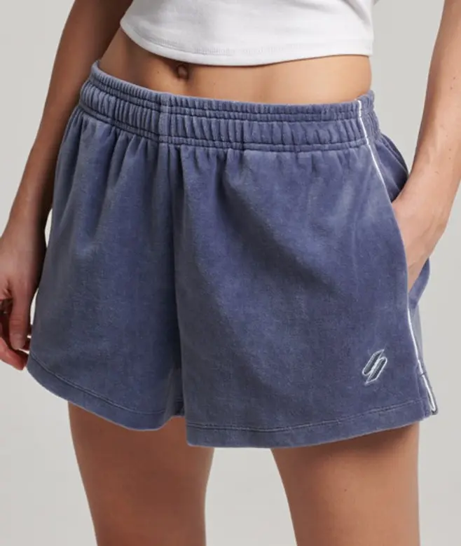 Superdry Women's S Logo Velour Shorts Blue / Flint Stone Blue Grey -