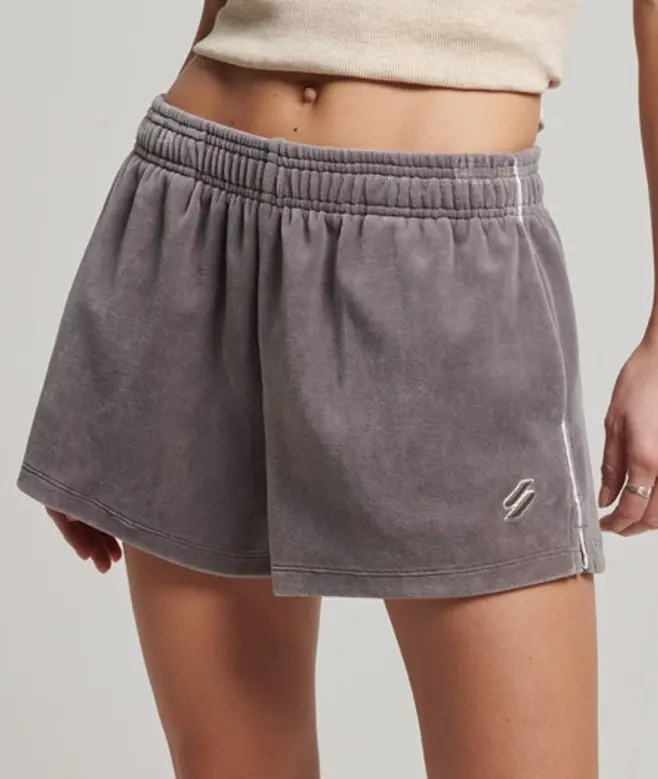 Superdry Women's Classic Embroidered S Logo Velour Shorts, Grey,