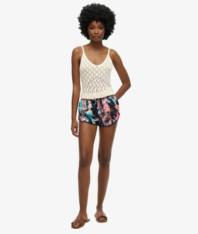 Superdry Women's Printed Beach Shorts Blue / Fluro Tropic -