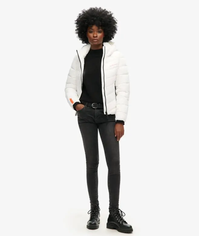 Superdry Women's Hooded Microfibre Padded Jacket White / Optic -