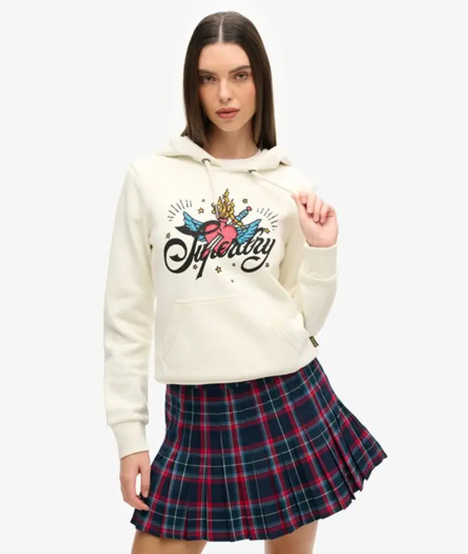 Superdry Women's Tattoo Script Graphic Hoodie Cream -
