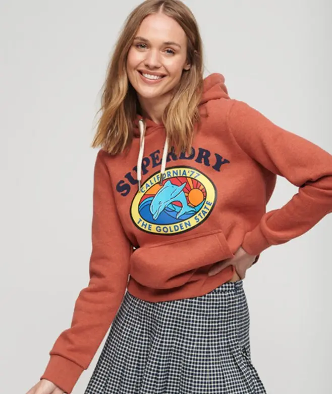 Superdry Women's Travel Postcard Graphic Hoodie Orange / Spiced Orange Marl -