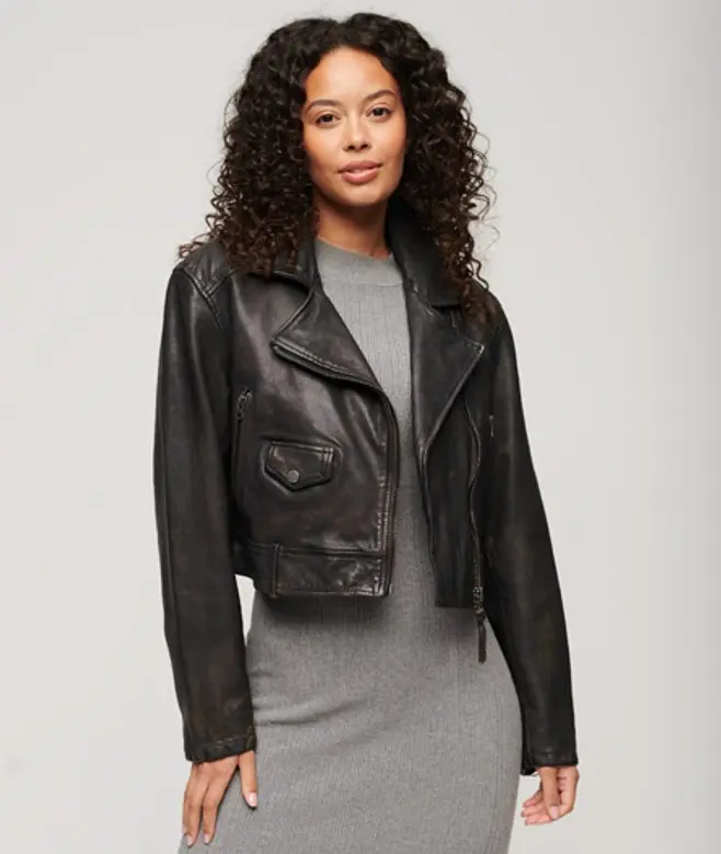 Superdry Women's Leather Biker Jacket Dark Grey / Smoke Grey -