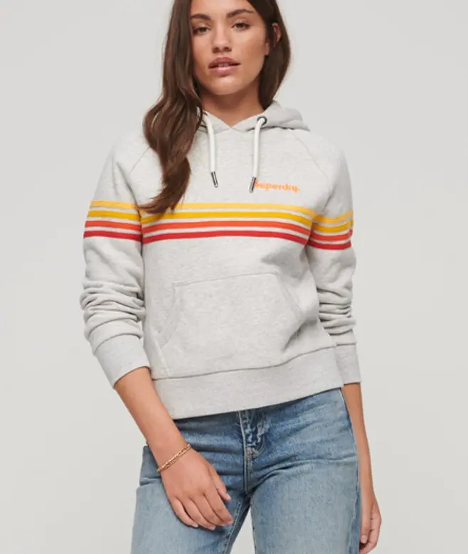 Superdry Women's Rainbow Stripe Logo Hoodie Grey / Birut Grey Marl -