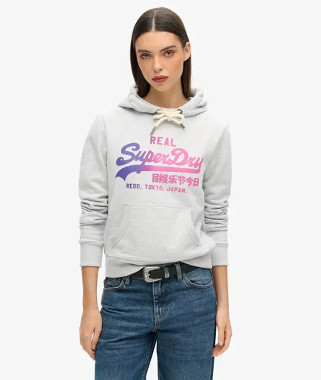 Superdry Women's Tonal Vintage Logo Graphic Hoodie Grey / Flake Grey Marl -