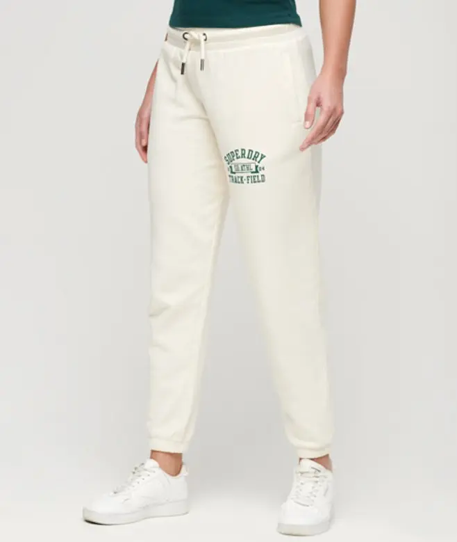 Superdry Women's Athletic College Loose Joggers Cream / Oatmeal Beige -