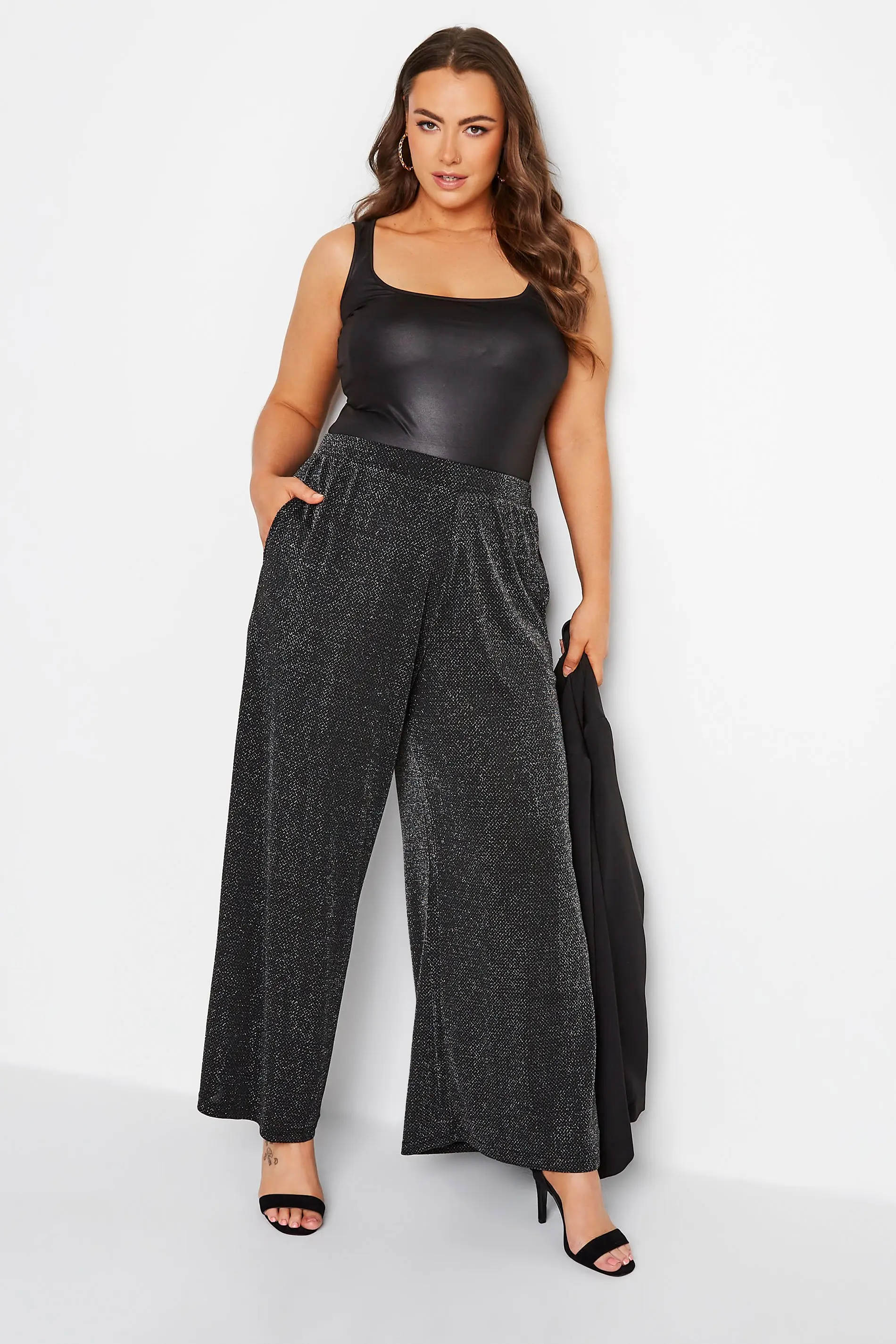 Yours Plus Size Black Glitter Wide Leg Trousers Size Regular > 34-36