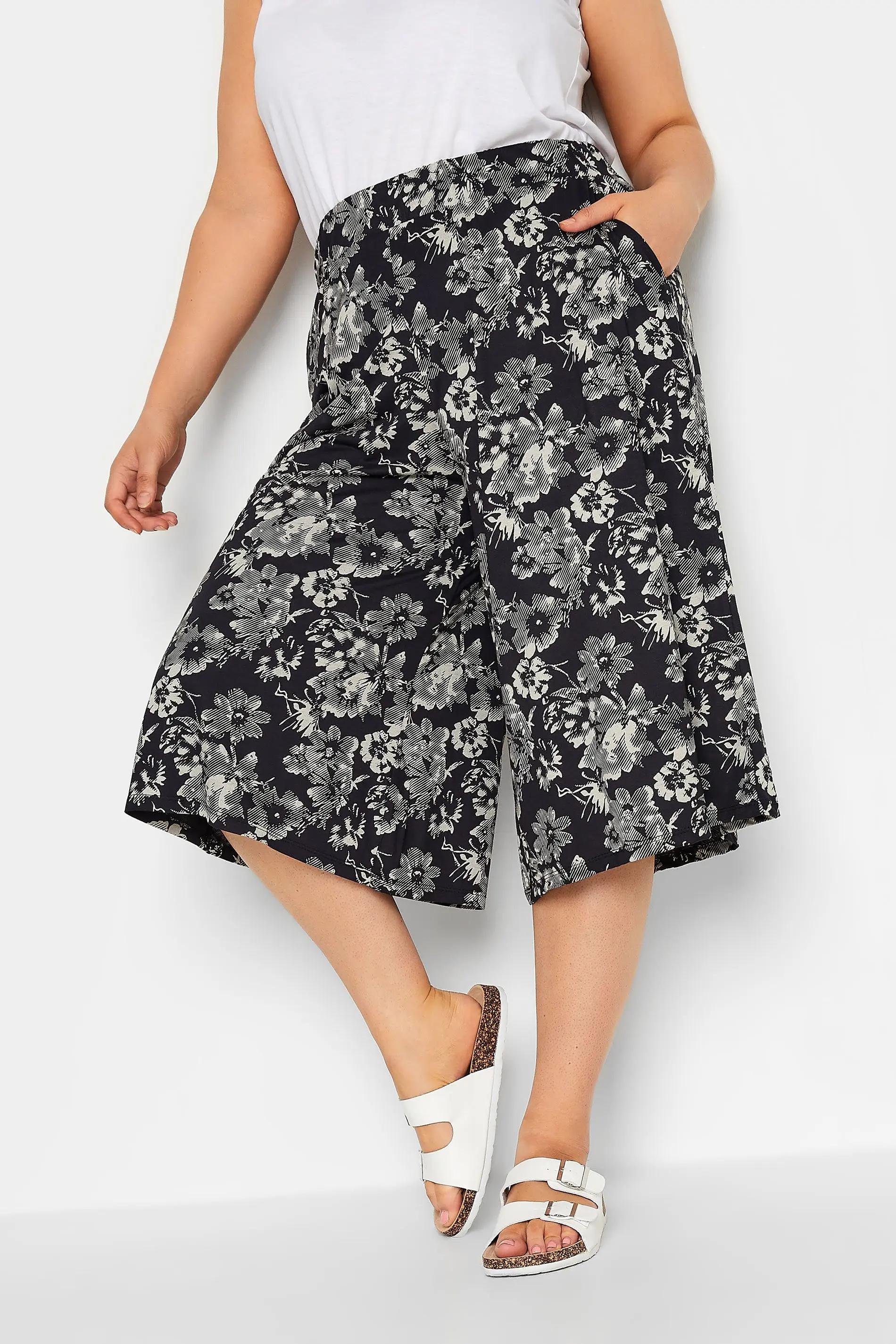 Yours Curve Black Graphic Flower Print Culottes Size 30-32
