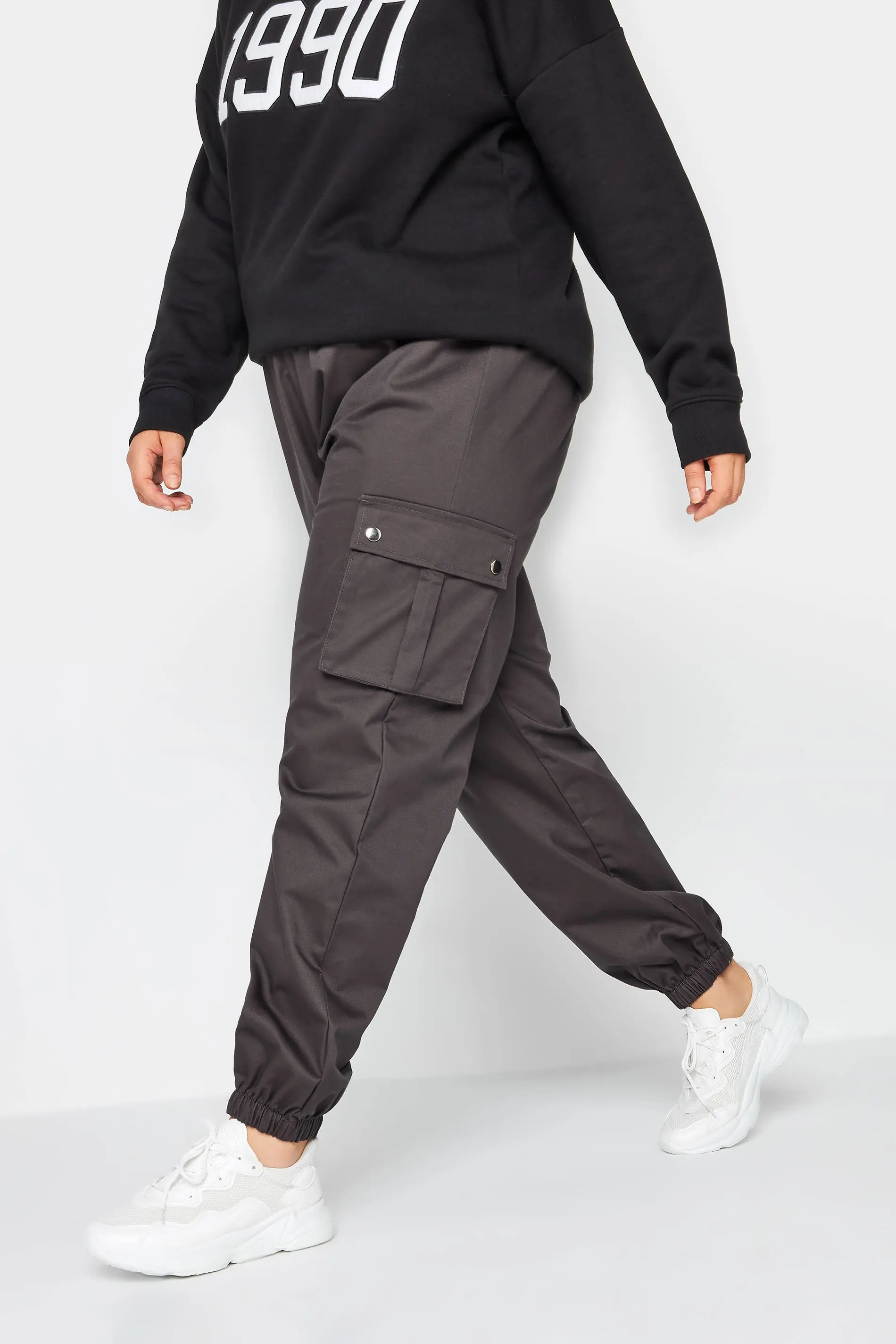 Yours Plus Size Grey Cuffed Cargo Trousers Size 28