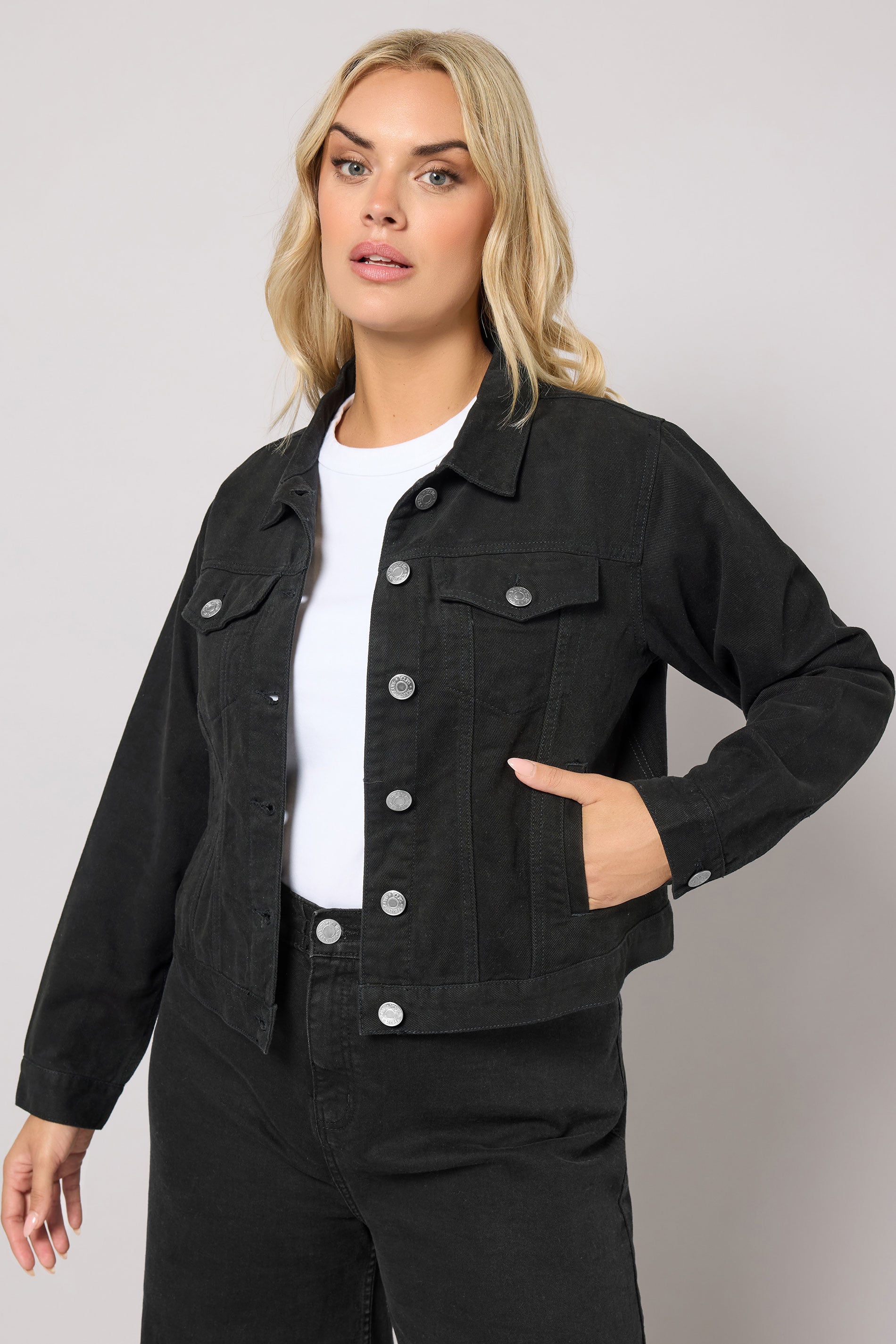Yours Plus Size Curve Black Denim Jacket Size 30-32