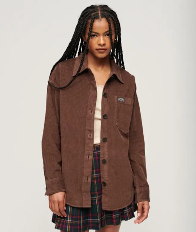 Superdry Women's Chunky Cord Overshirt Brown / Chocolate Brown -