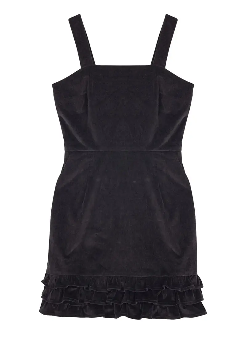 Joanie Clothing Gertie Square Neck Velvet Ruffle Pinafore Dress