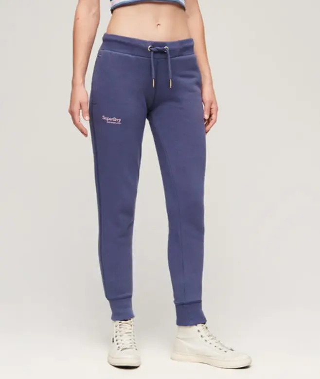 Superdry Ladies Slim Fit Embroidered Logo Essential Joggers, Navy Blue,