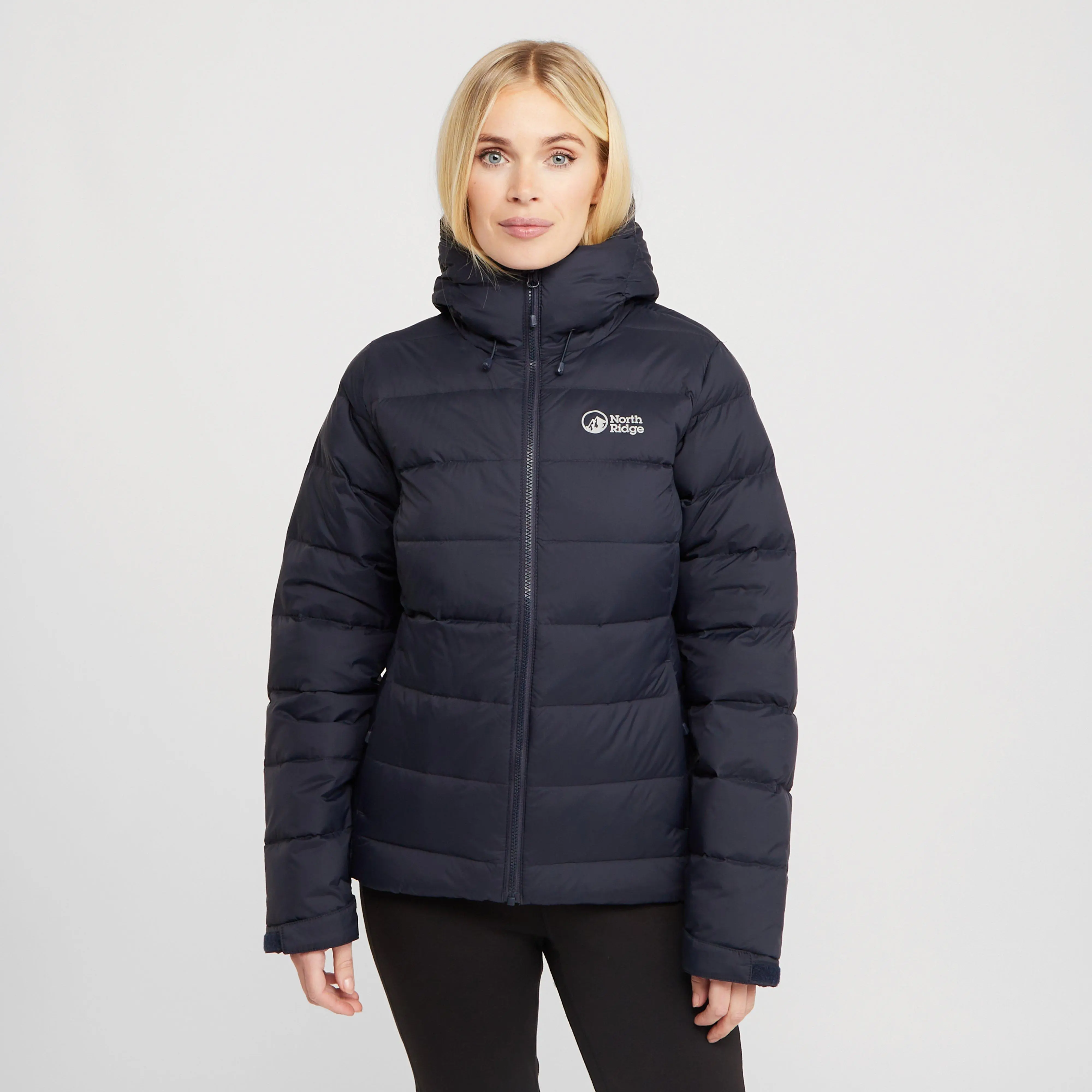 Whether you're commuting or taking a stroll in the Lakes, the North Ridge Women's Tech Down Jacket ensures you'll stay warm with an impressive 550 fill power duck down insulation. Opt for maximum protection with an adjustable hood and stiffened peak, or go minimal by removing it. Two external pockets provide convenient storage for possessions or cold hands.· 550 fill power duck down insulation· Down proof lining - keeps the down and feathers secure inside the jacket· Polyamide Ripstop fabric with DWR (Durable Water Repellent)· Adjustable Velcro cuffs· 2 x hand pockets with soft lining· Adjustable down filled hood with Velcro closure and stiffened peak· Adjustable hem· Hood is removable· Nylon face fabric· Colour: Navy