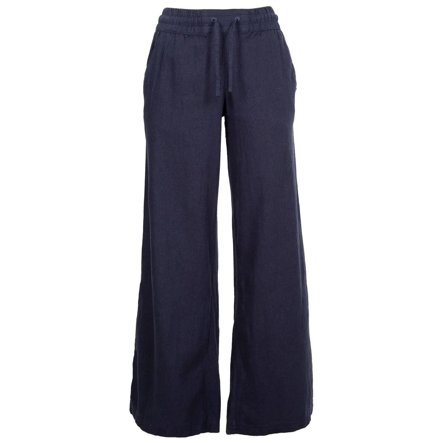 55% Linen, 45% Viscose. Fabric: Woven. Design: Plain. Fit: Wide Leg. Length: Full. Pockets: 2 Side Pockets, 2 Back Pockets. Waistline: Drawcord, Elasticated.
