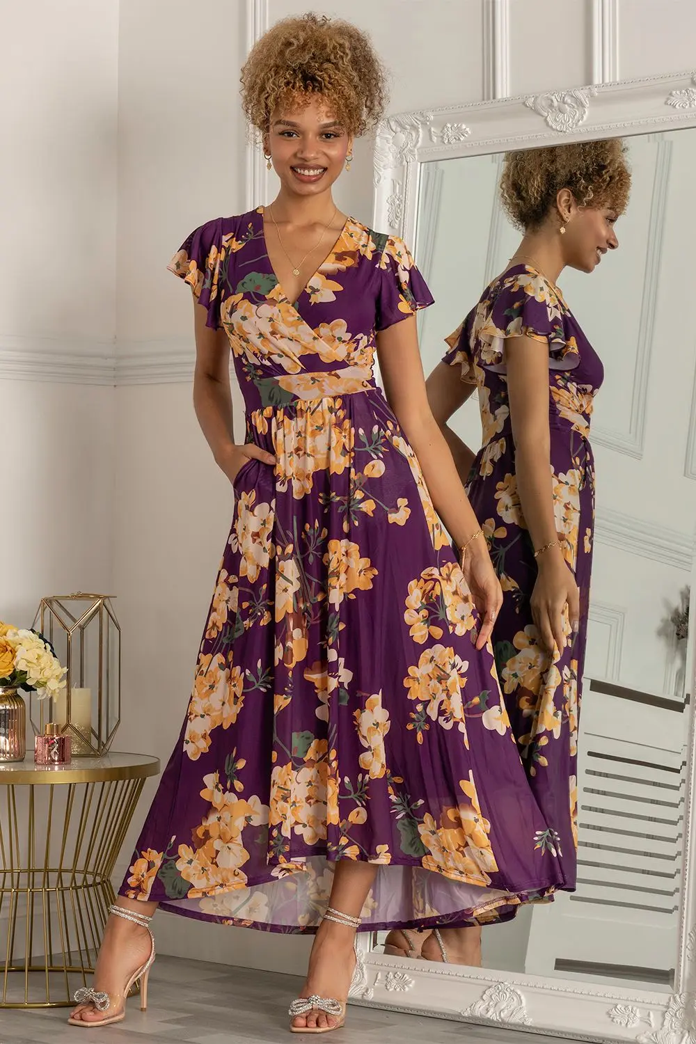 In a flattering fit-and-flare silhouette, the piper maxi dress by Jolie Moi is doused in pretty florals and cut from a premium knitted mesh fabric with full lining. Accentuating the figure with a V neckline and short angel sleeves, this dress will be the perfect addition to your wardrobe for many seasons to come.