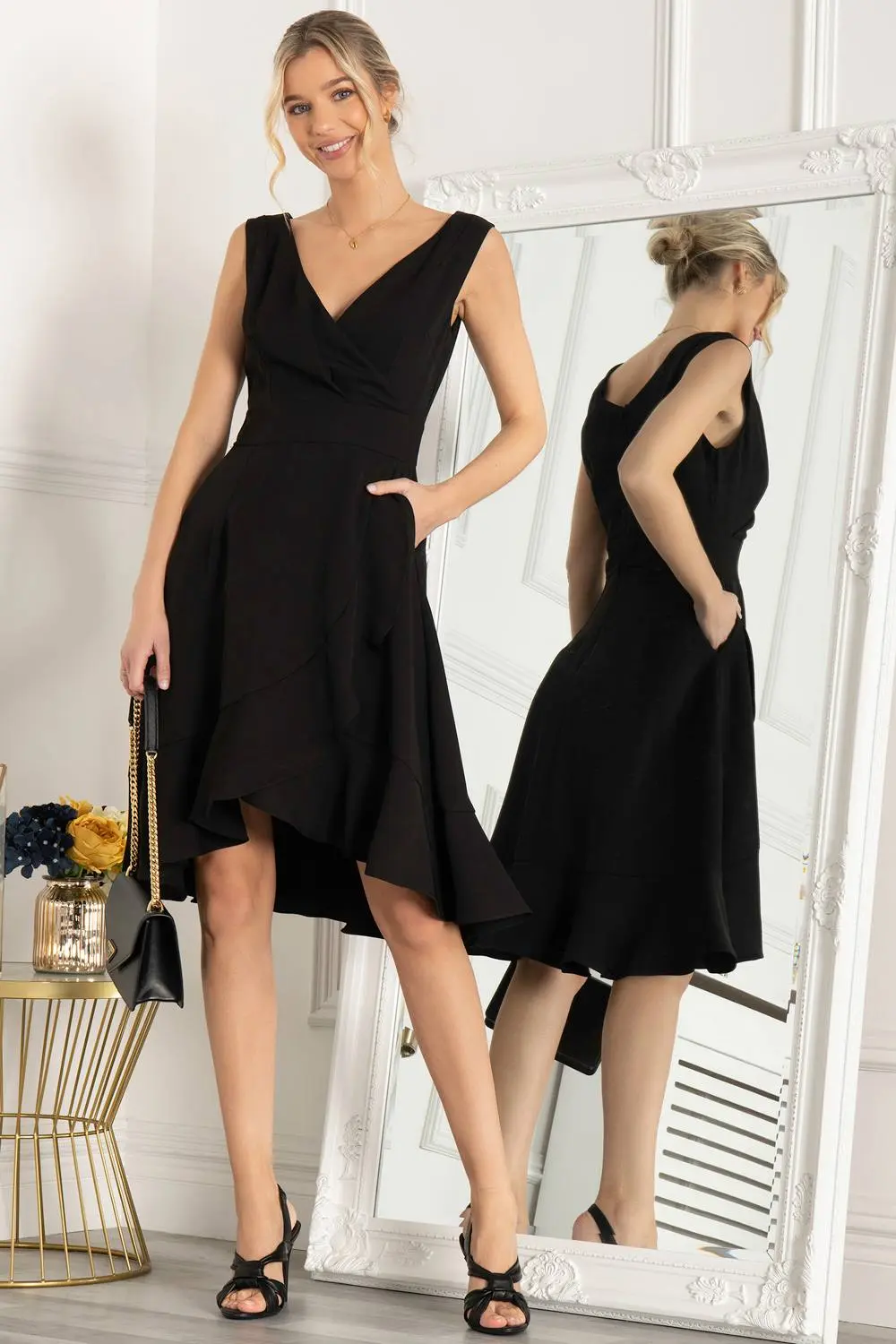 Jolie Moi Women's Eliza Frill Hem Dress in Black