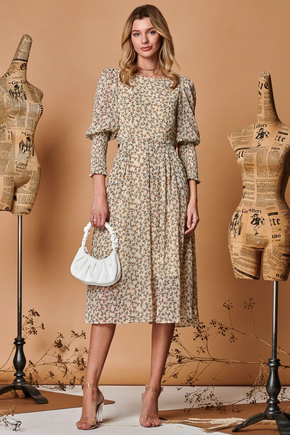 Cut to a midi length, this dress from Jolie Moi is crafted from a premium chiffon material. Complimented by a gorgeous floral print, and features 3/4 length shirred sleeves, 2 pockets, a round neckline, and a self-tie detail for a perfect fit. Add a pair of heels to complete the look.