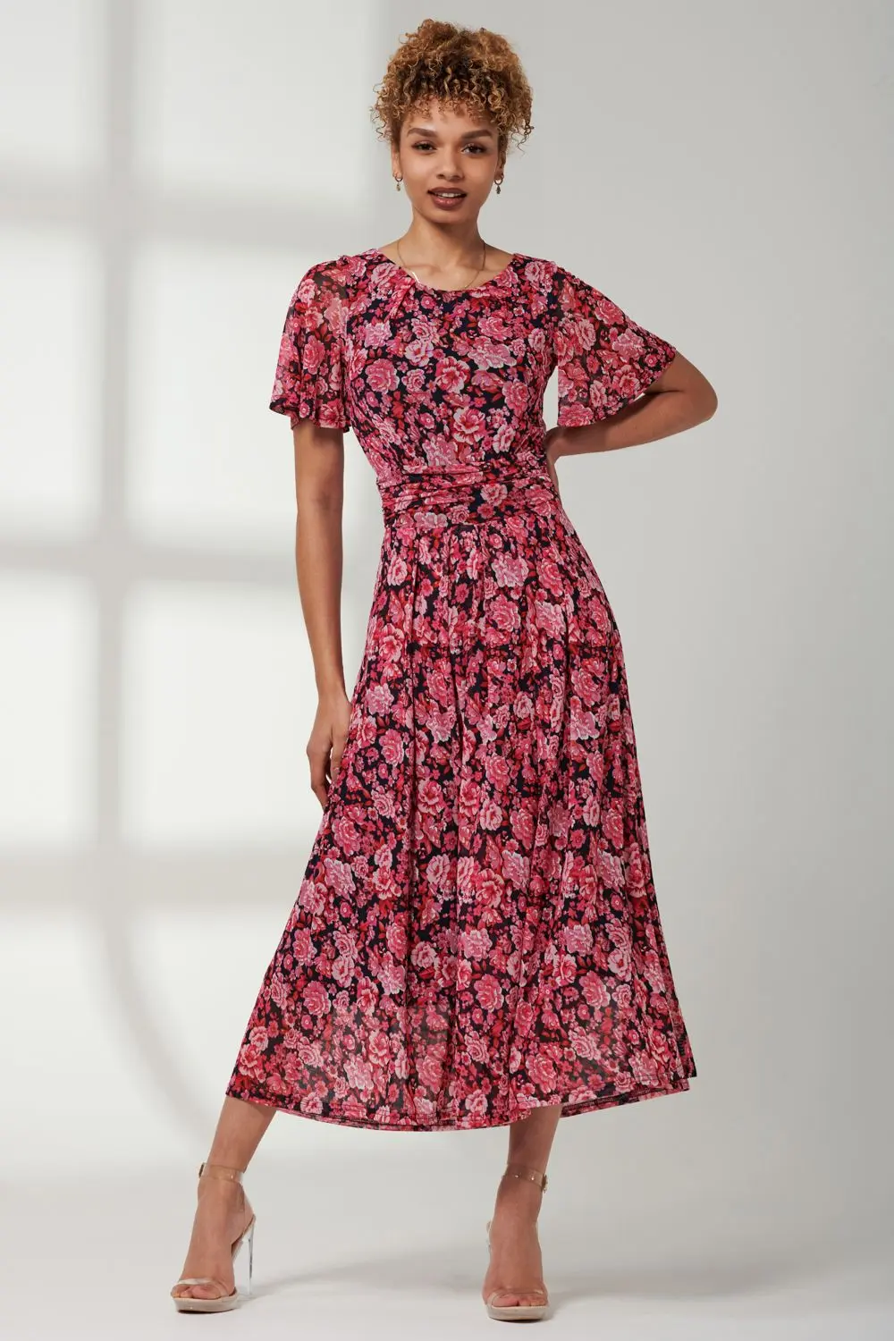 In a fit and flare silhouette that swings out at the skirt, this midi dress by Jolie Moi is printed with fresh florals throughout. With a traditional round neckline and short sleeves, it is your go-to for formal soirées.